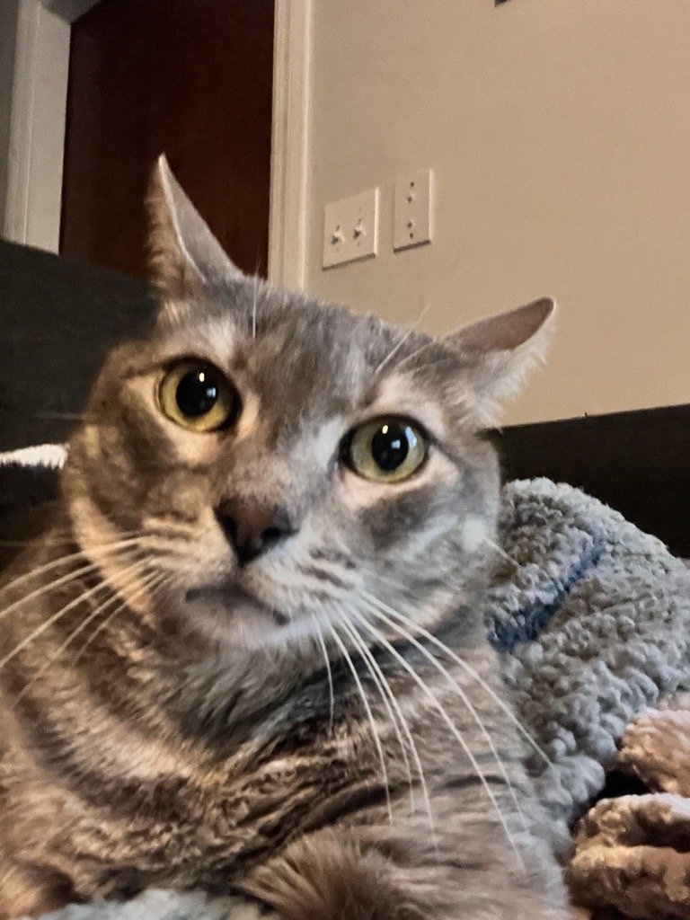 Autumn is a sassy cat that has no problem giving you attitude, but she is also the neediest. She follows me around everywhere, sleeps next to me every night, she will be the first one to greet me at the door, and she will get jealous if I give the other cats more attention. She craves love on her terms. She is more like me than I realized, and I love her for it.