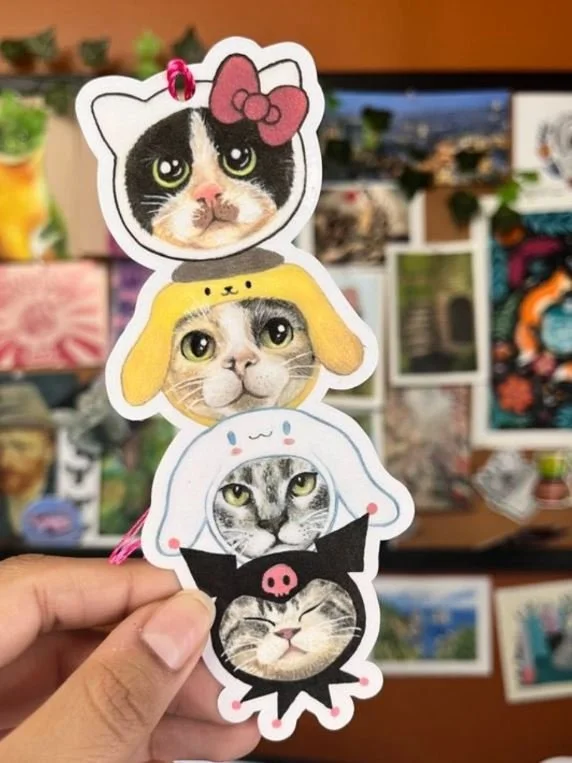 Categories: Select a Category Bookmarks Key Chains Greeting Cards Stickers T-Shirts Tote Bags Large Art Prints Bookmarks Bookmarks Key Chains Greeting Cards Stickers T-Shirts Tote Bags Large Art Prints Sanrio Cats Bookmark $5.50 Add To Cart Added!