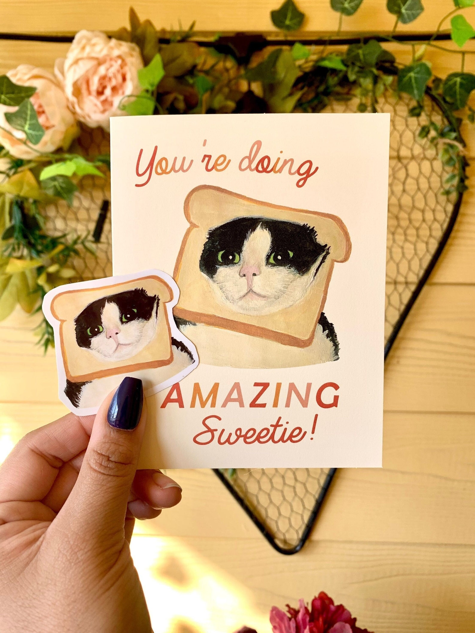 Categories: Select a Category Greeting Cards Stickers T-Shirts Tote Bags Large Art Prints Greeting Cards Greeting Cards Stickers T-Shirts Tote Bags Large Art Prints Bread Cat Greeting Card- Trying My Best , Feeling My Worst from $5.50 Select Option Card Card with Sticker Add To Cart Added! Wizard Cat Birthday Card- Hope You Have a Magical Birthday! from $5.50 Select Option Card Card with Sticker Add To Cart Added! Cowboy Cat Greeting Card- Meowdy Partner from $5.50 Select Options Card Card with Sticker Add To Cart Added!